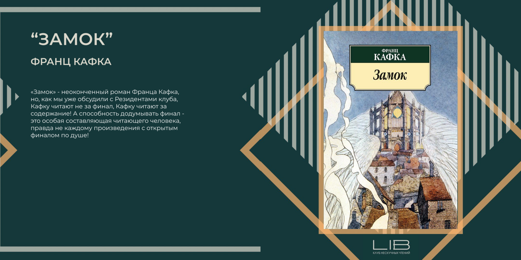«Замок» - неоконченный роман Франца Кафка, но, как мы уже обсудили с Резидентами клуба, Кафку читают не за финал, Кафку читают за содержание! А способность додумывать финал - это особая составляющая читающего человека, правда не каждому произведения с открытым финалом по душе!
