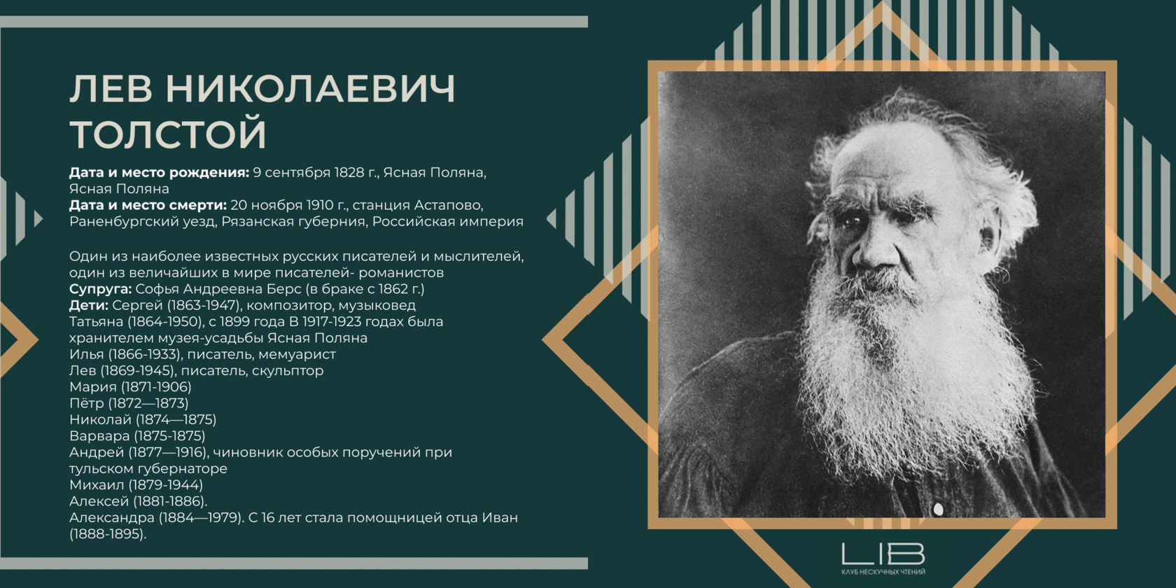- Мать Льва Николаевича принадлежала к семейству Волконских, потомков Рюриковичей.